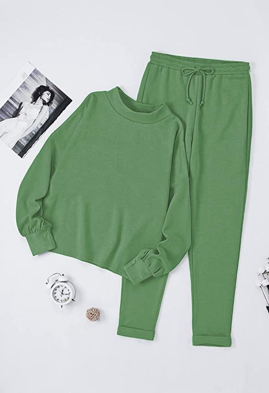 Fixmatti Women Two Piece Fall Outfit Long Sleeve Sweatshirt and Sweatpants Tracksuit Matching Sets Green XL