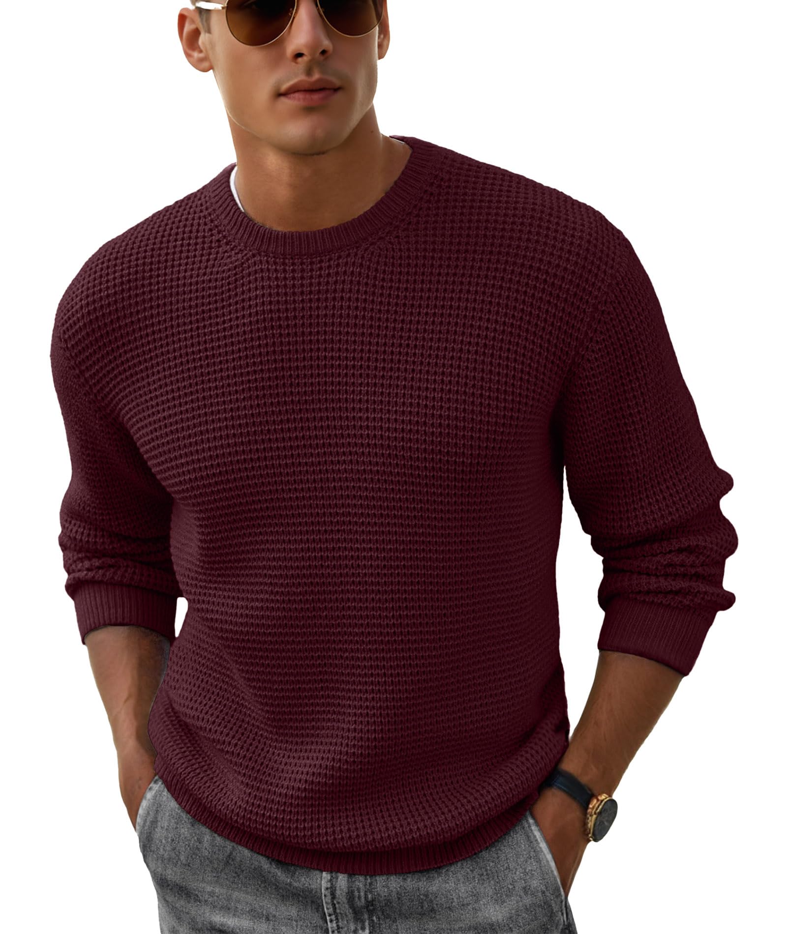 - Premium Material - Askdeer mens waffle sweaters are made of soft , comfortable, durable and natural stretch fabric. Bring you a cozy and warm wearing experience throughout the cold days.