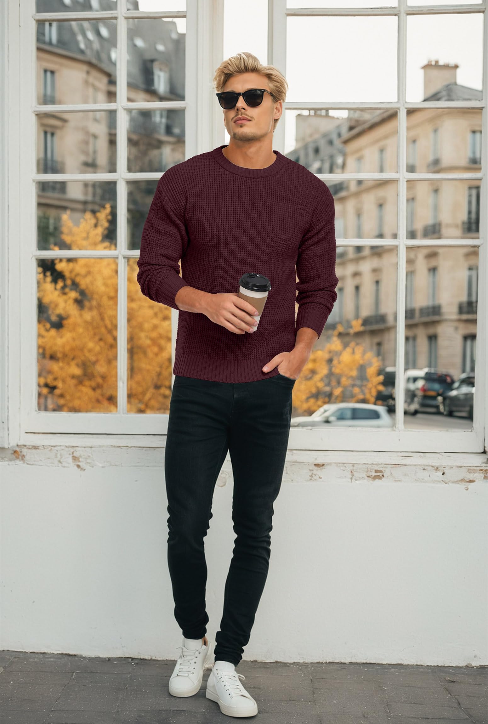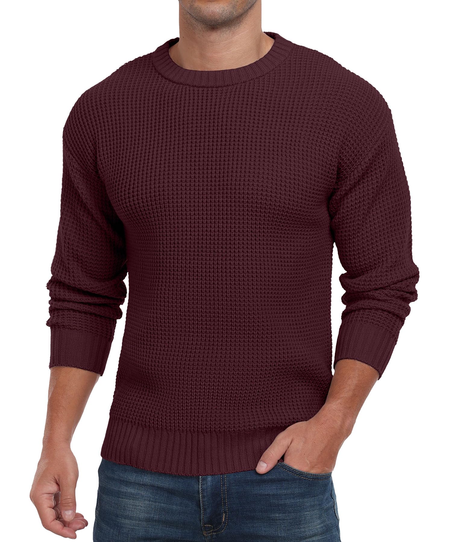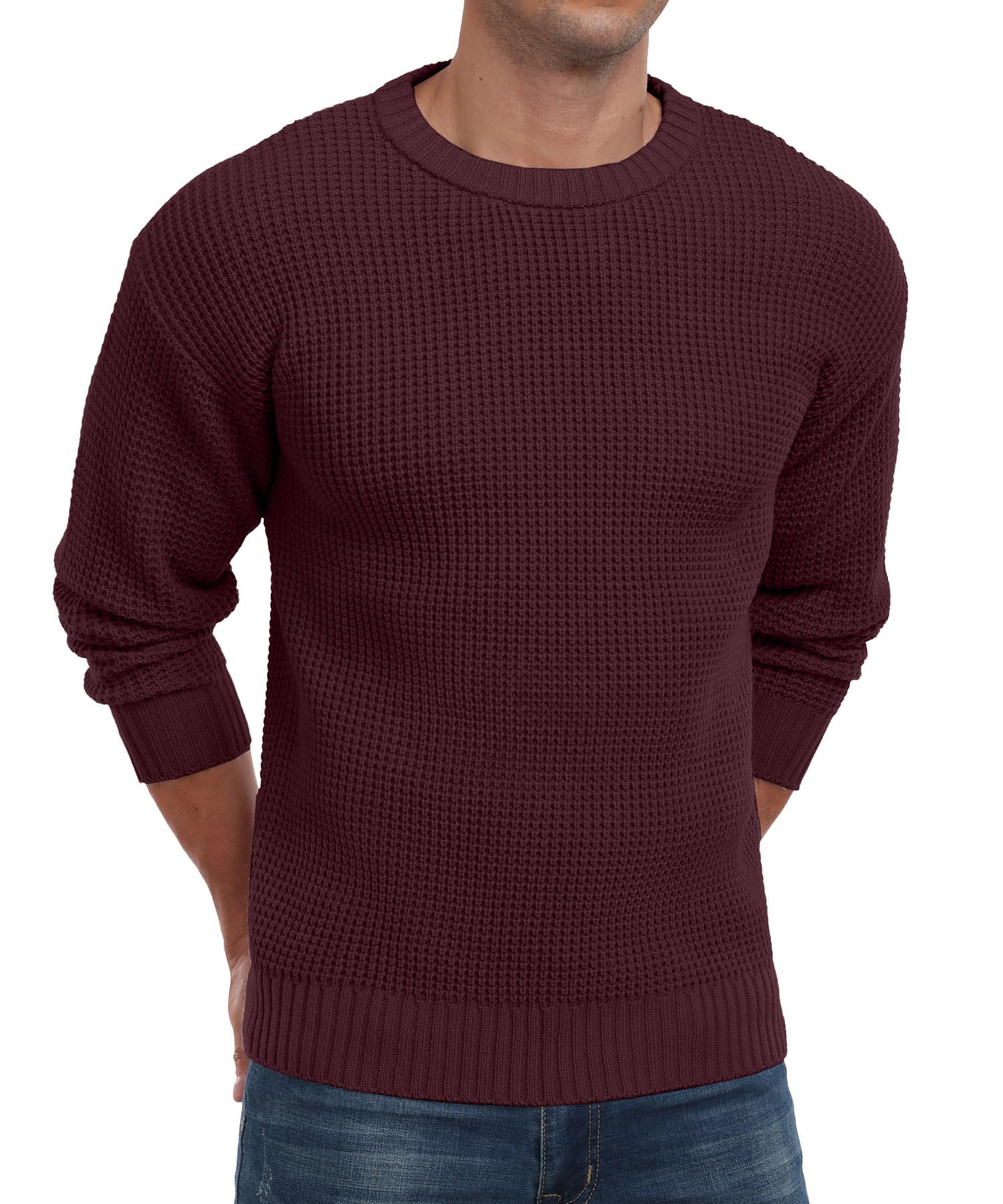 - Versatile Match - Askdeer pullover sweater with waffle texture looks beautiful on its own, and is also a perfect layer under a blazer, jacket or trench coat, perfect for men's everyday essentials, creating a classic, casual and classy outfit along with comfort and warmness.