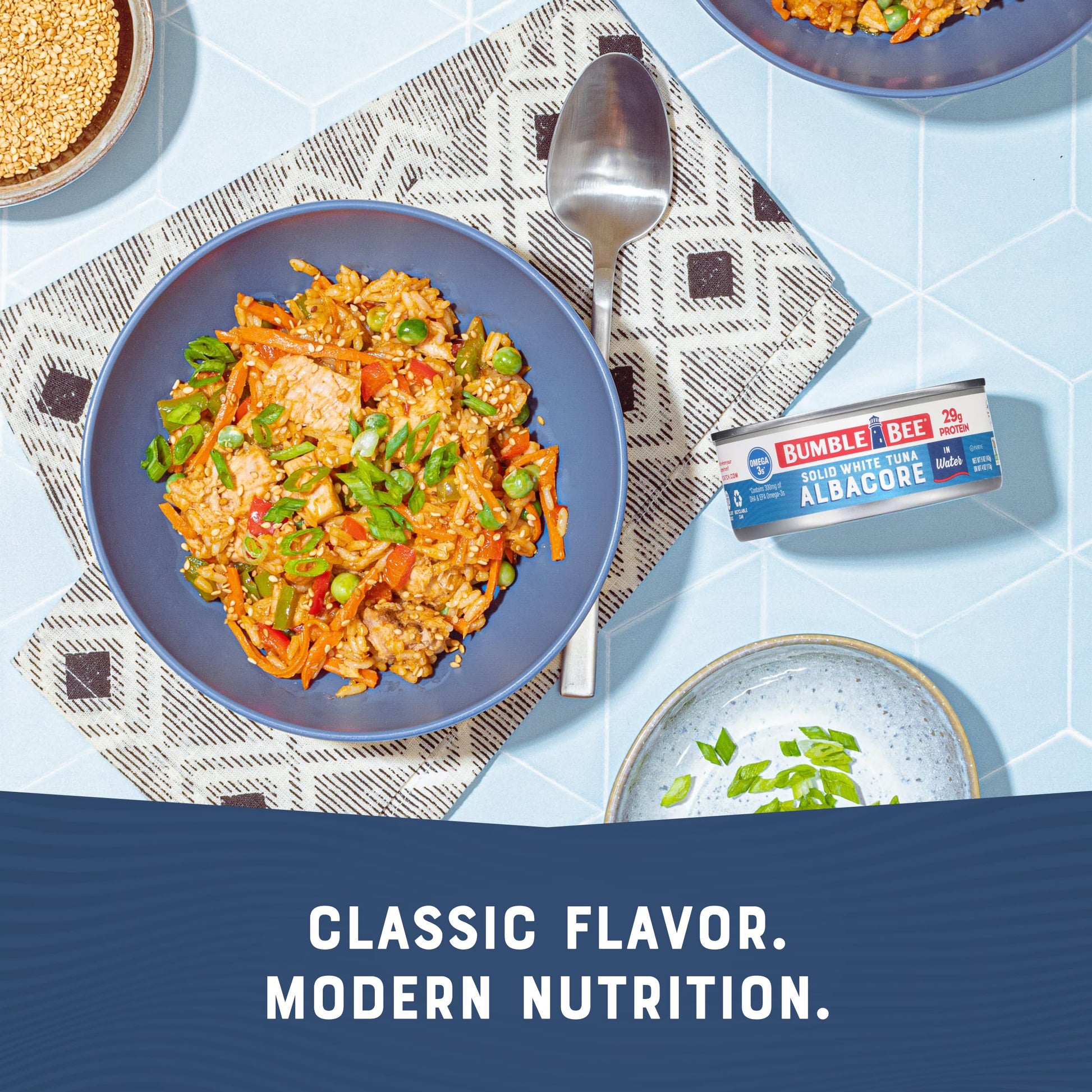 Details: Bumble Bee Solid White Albacore in Water doesn’t just do it all, it does it all better. It’s fast food that doesn’t come from a fryer. A workout fuel packed with lean protein and Omega-3s that beats eggs and protein shakes. A superfood without the super high cost. It will comfort you in a casserole, turn the table up on a taco Tuesday, and make you a real wrap star.