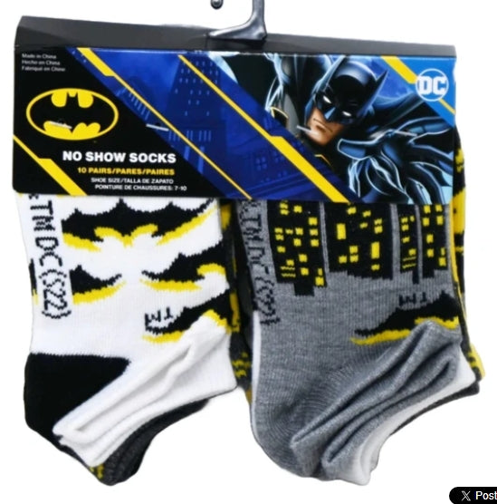 DC Batman The Dark Knight 10 Pack Kids No Show Socks in Sizes 4-6