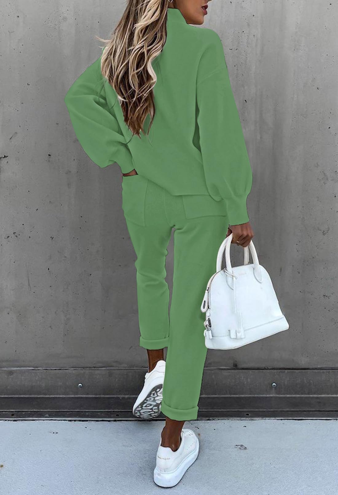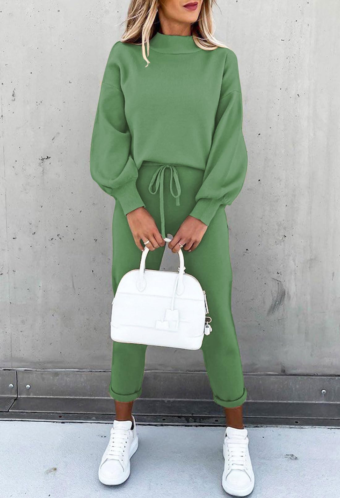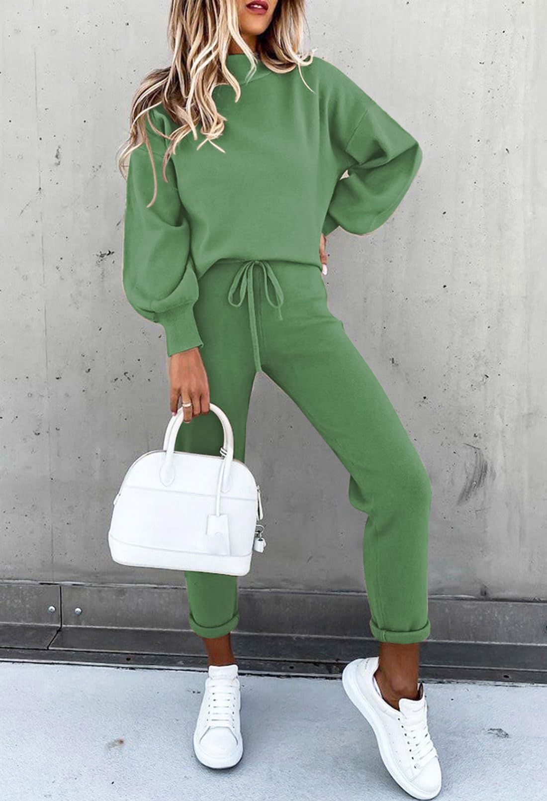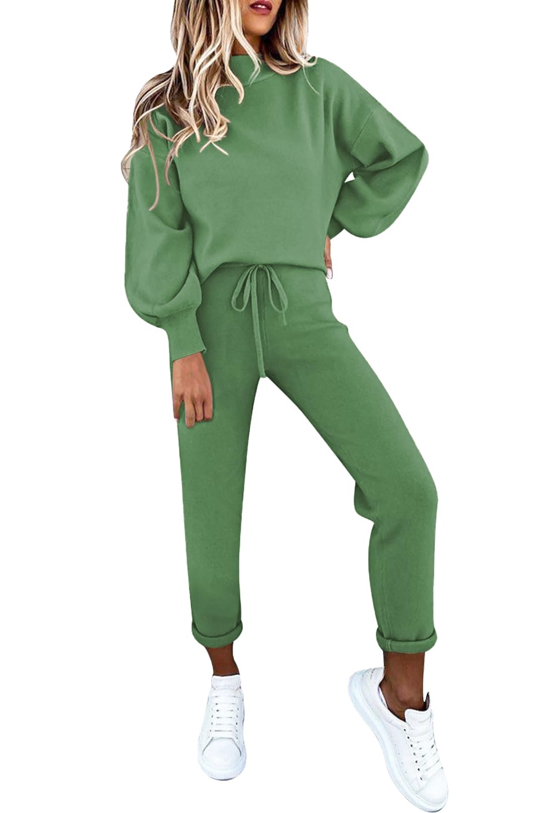 Fixmatti Women Two Piece Fall Outfit Long Sleeve Sweatshirt and Sweatpants Tracksuit Matching Sets Green XL