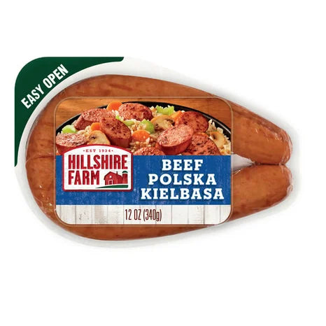 Hillshire Farm Beef Polska Kielbasa is a premium smoked sausage handcrafted with natural spices and only the finest cuts of meat. This fully cooked and ready-to-eat kielbasa delivers farmhouse quality with a rich, bold flavor. Perfect for slicing and serving, it's a delicious answer to weeknight dinners or any occasion where you want a savory and satisfying meal. Keep Hillshire Farm Beef Kielbasa refrigerated to ensure freshness and enjoy the quality taste that comes from using the best ingredients