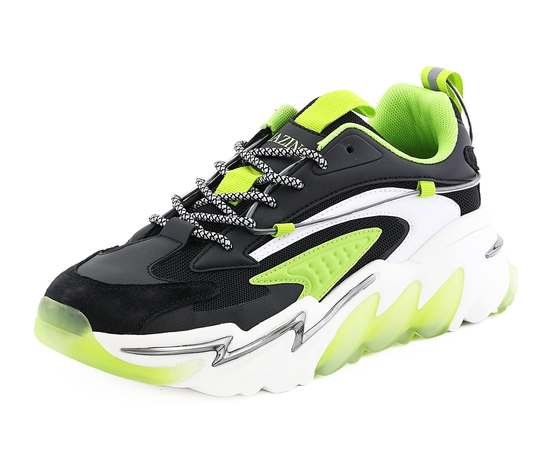 Mazino Chrome Fashion Chunky Sneakers for Men -Men's Athleisure Casual Shoes in (Lime /10.5)