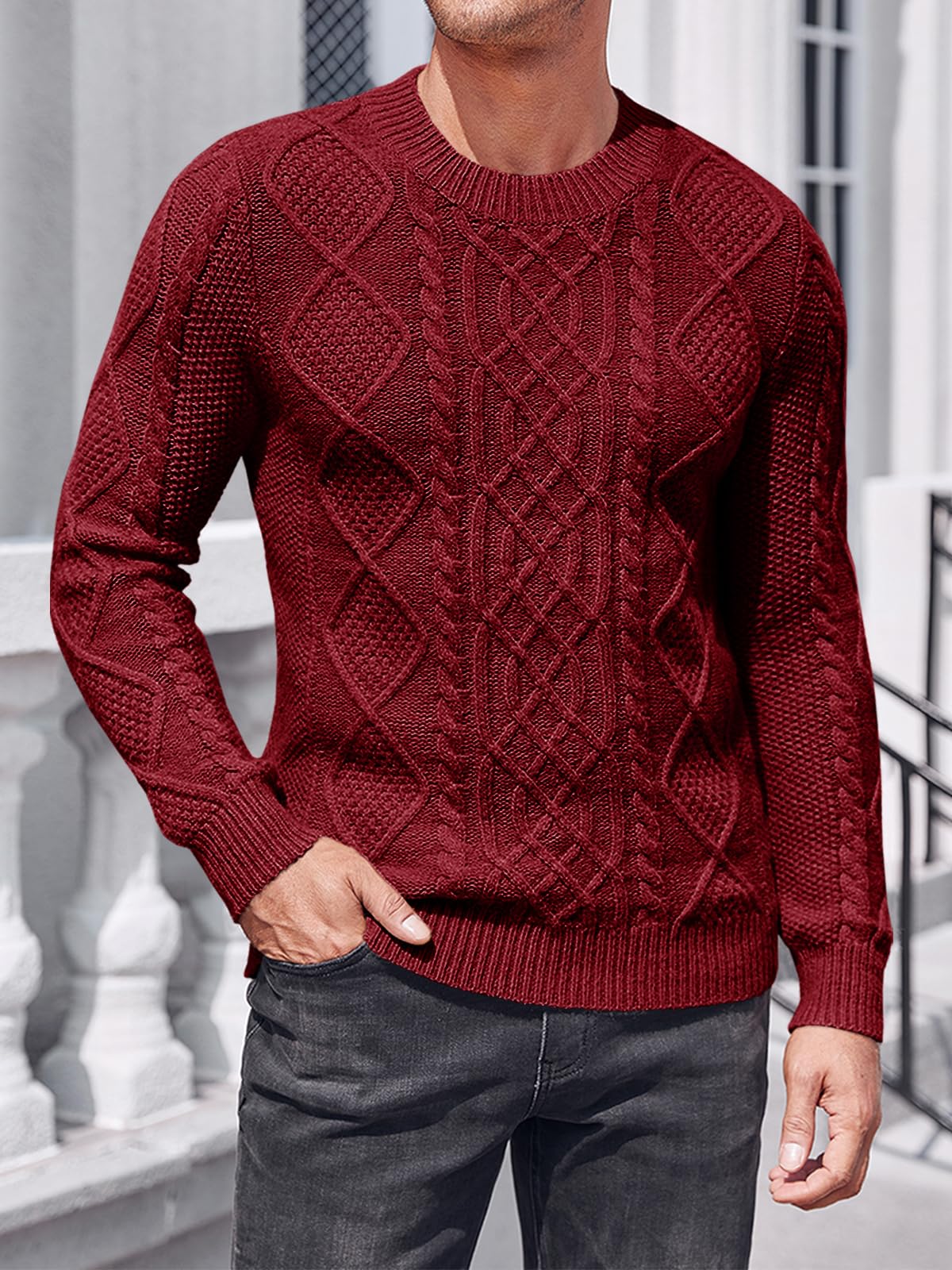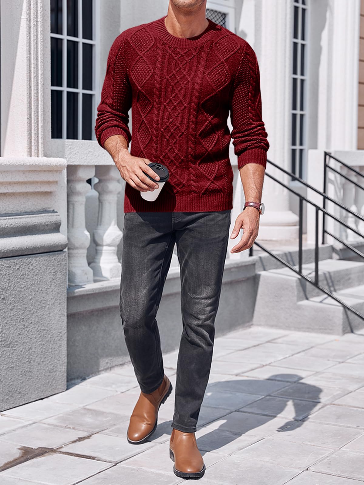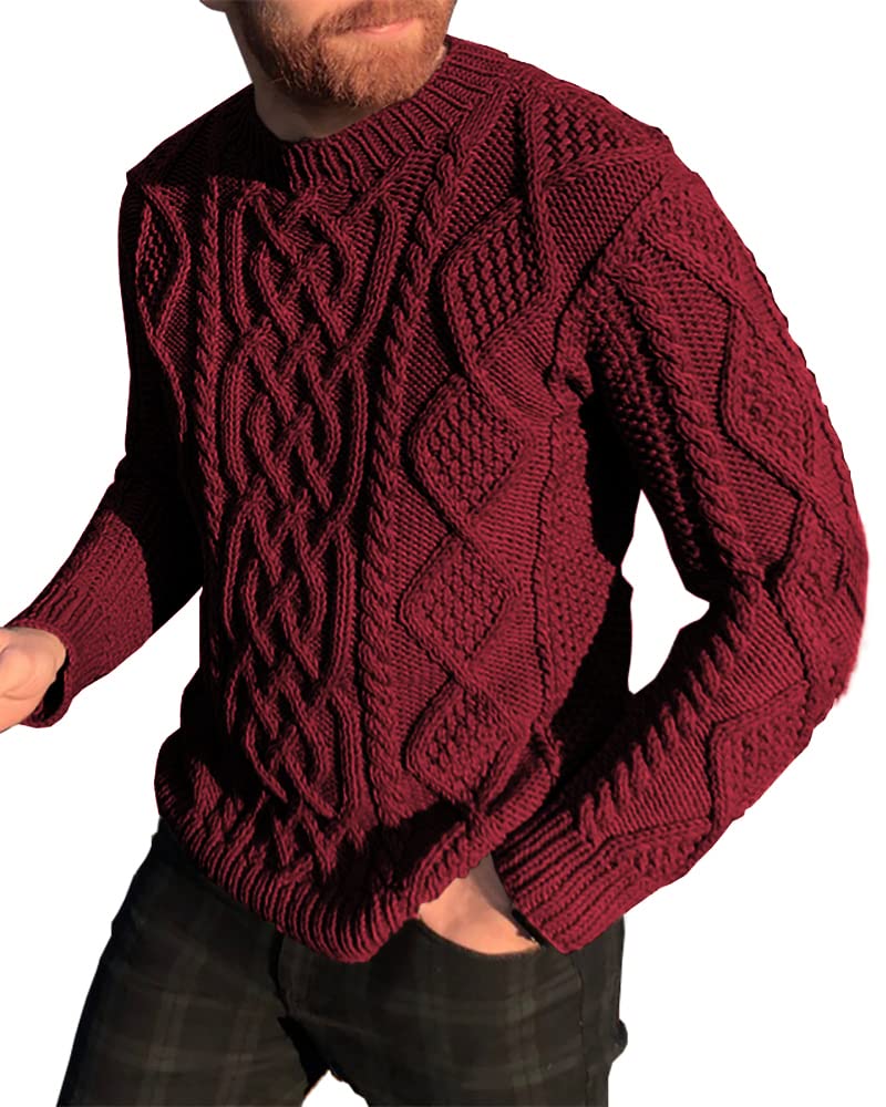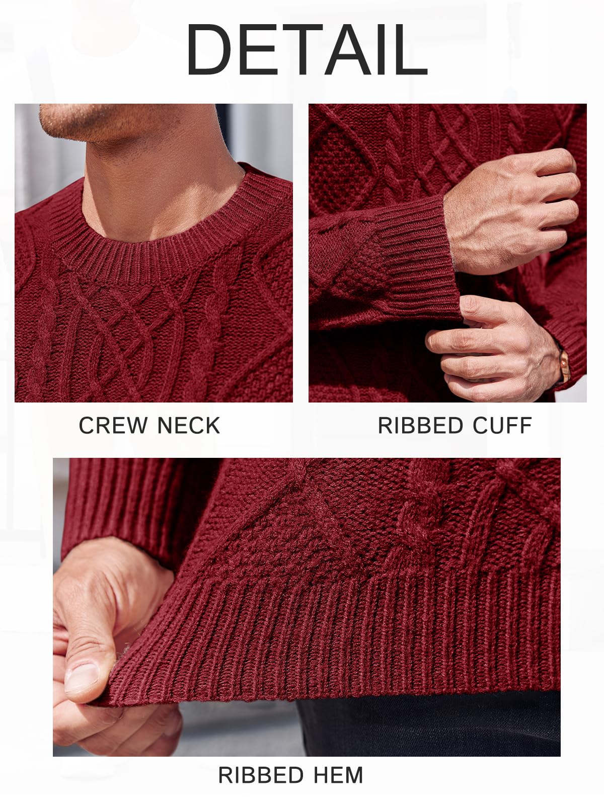 NIUBIA Men's Slim Fit Crewneck Pullover Sweater Winter Casual Chunky Cable Knit Comfort Heavy Long Sleeve Sweaters Red