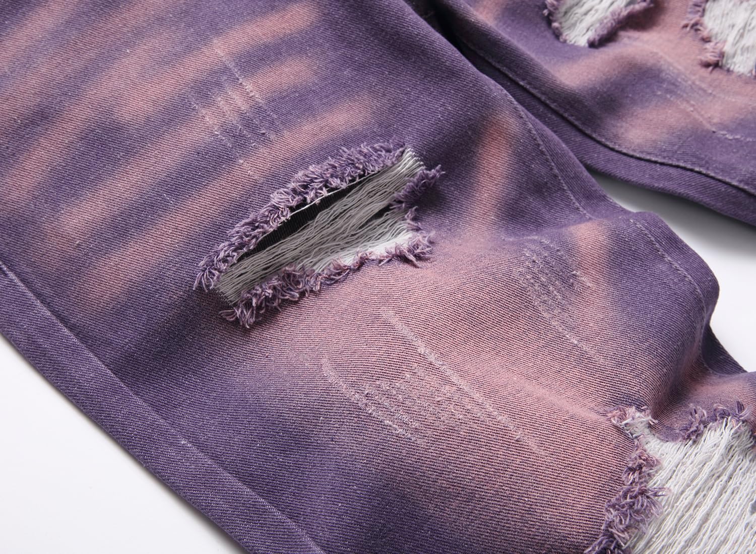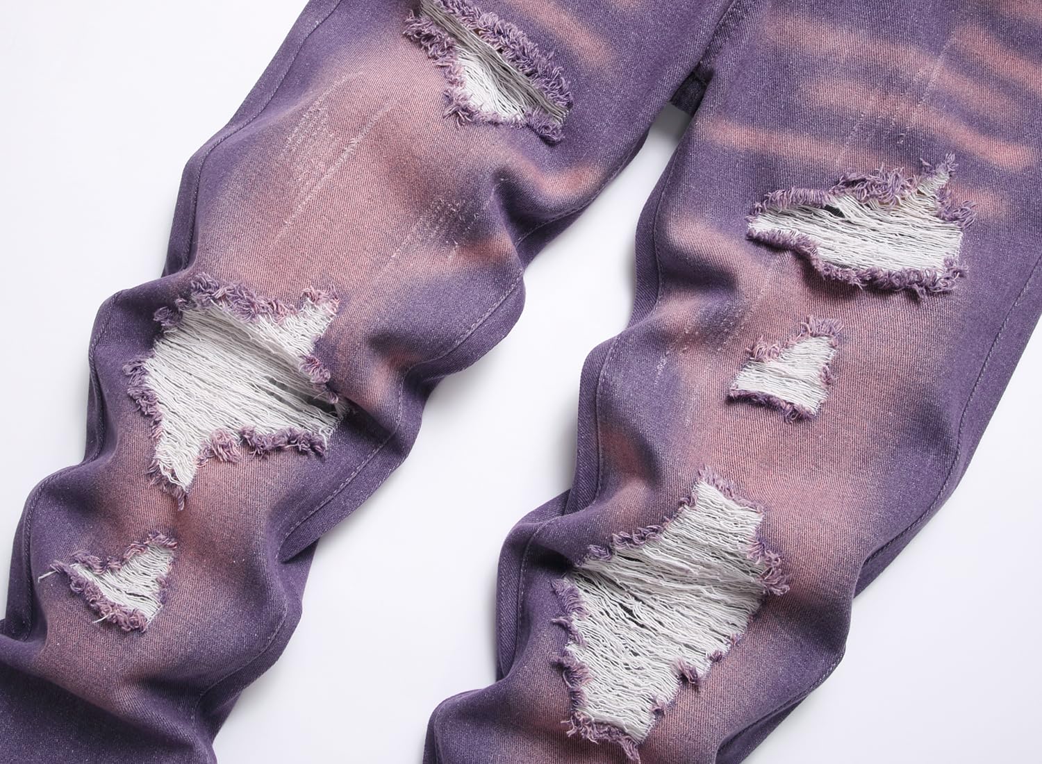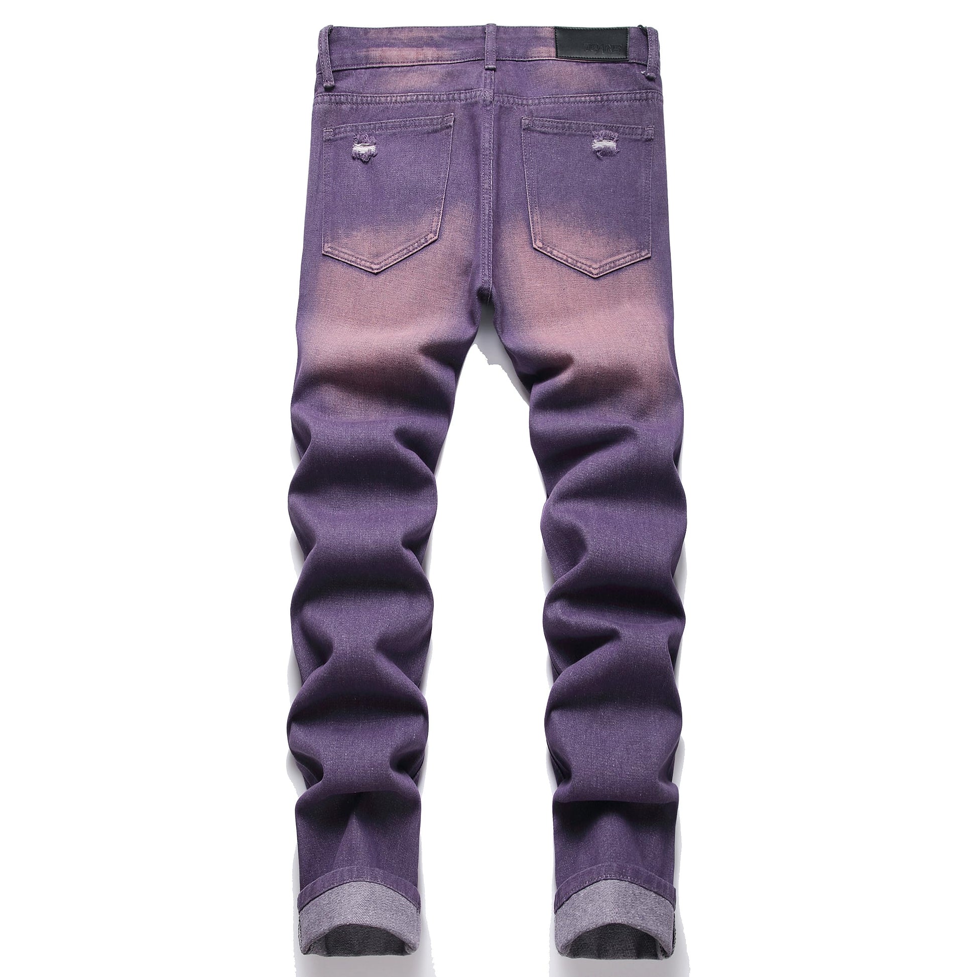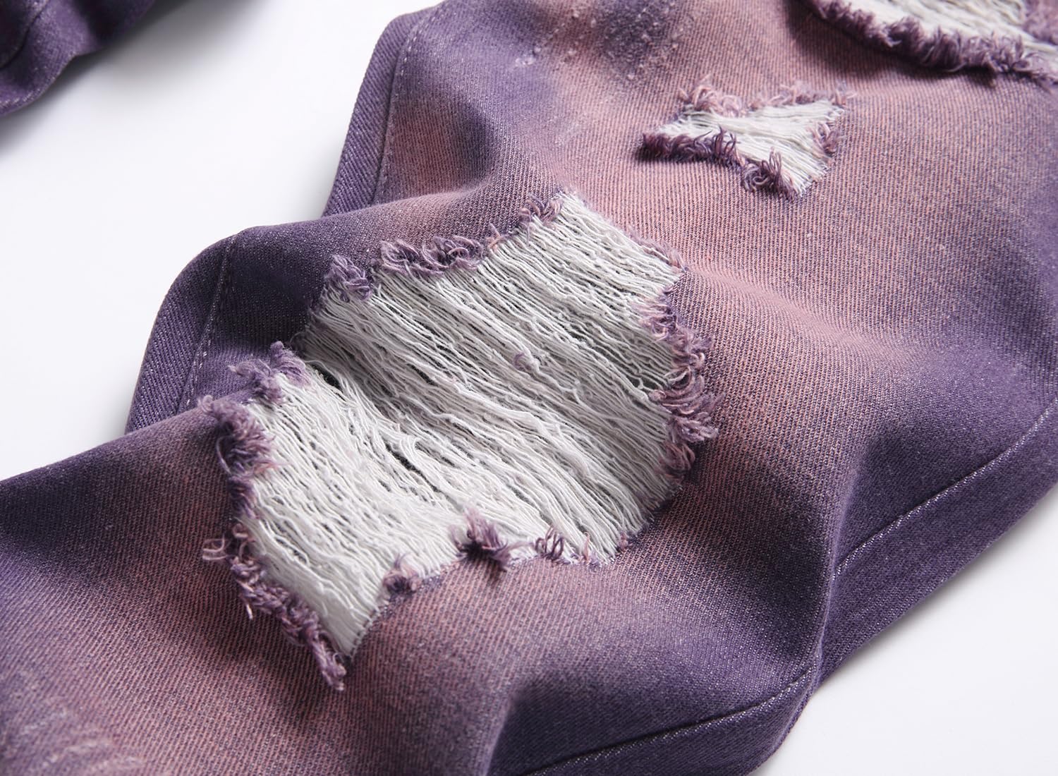 OIIIO Men's Ripped Slim Fit Straight Leg Jean Denim Pant (28, 30026 Purple)