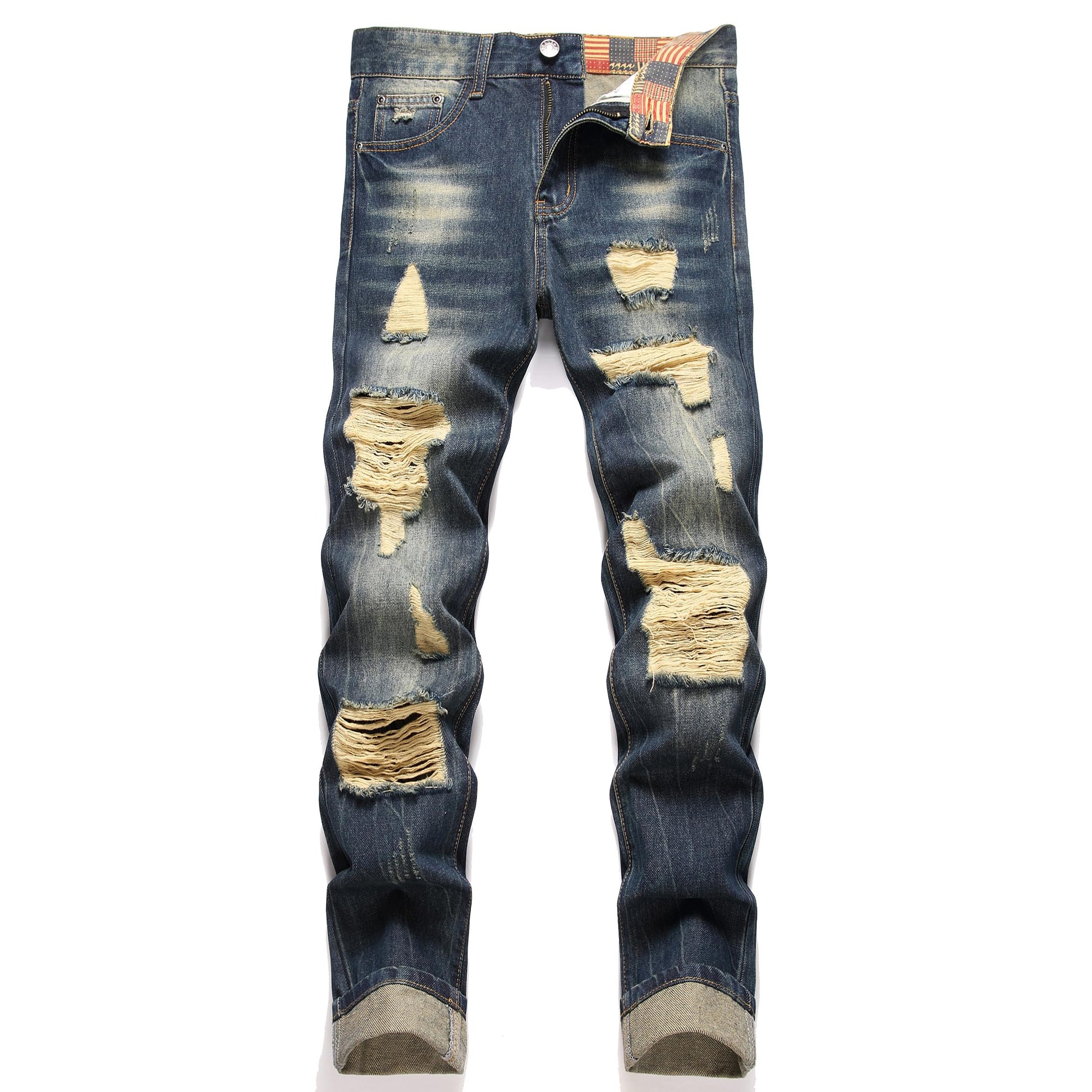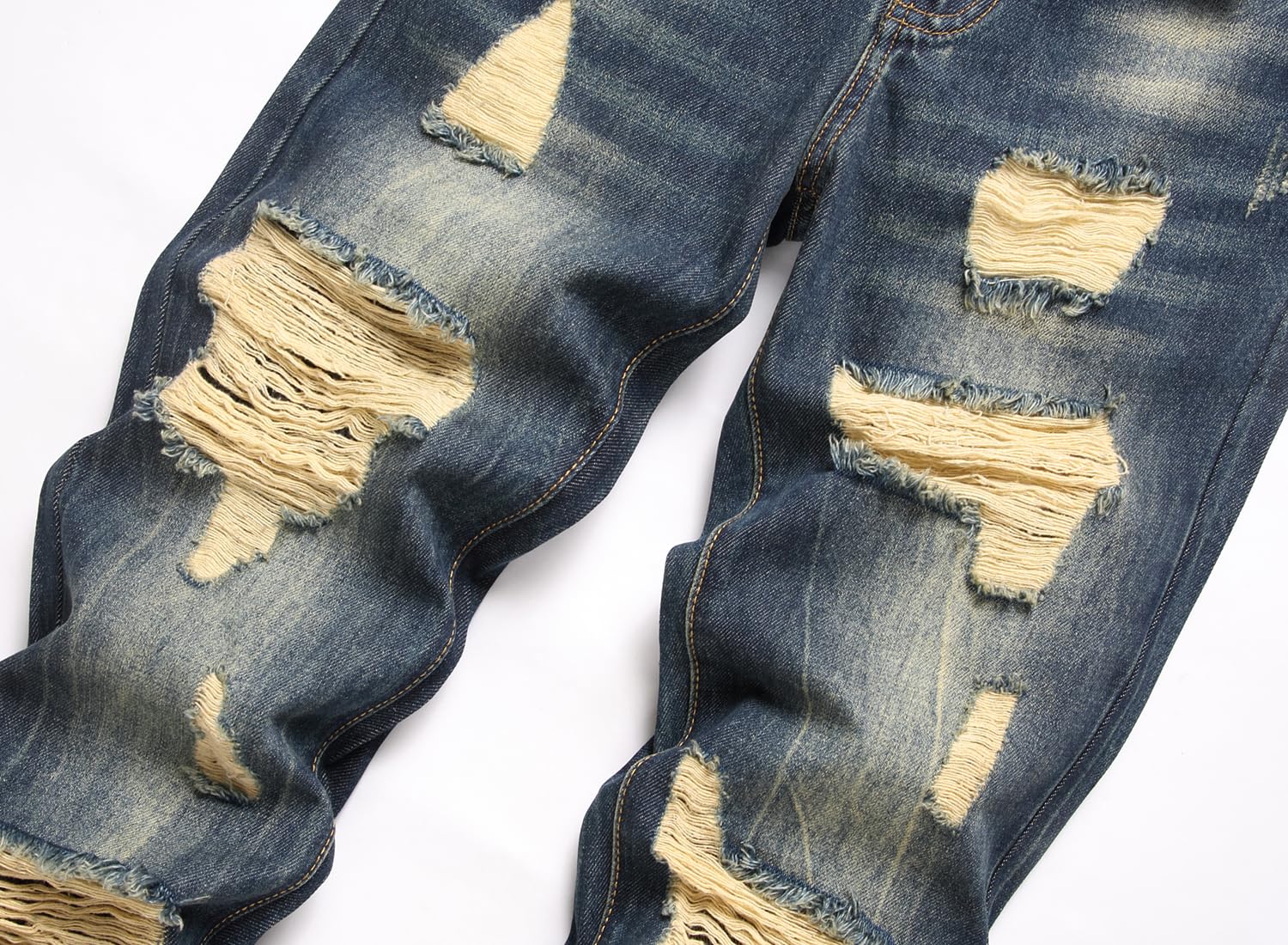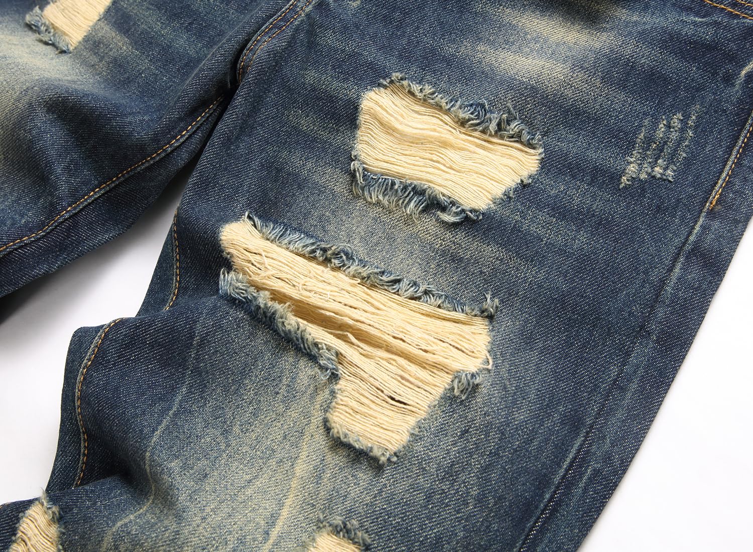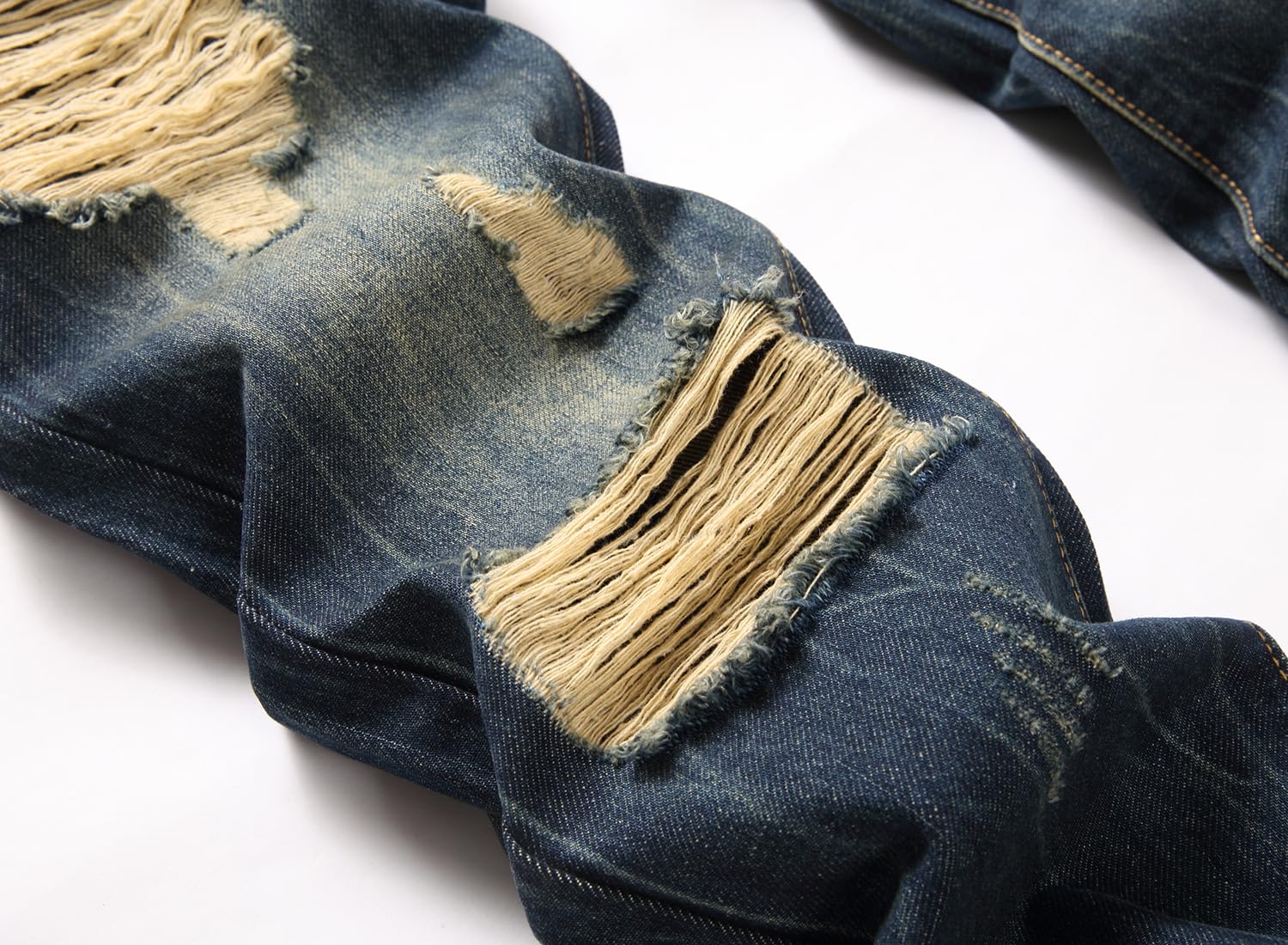RXXKKK Men's Regular Fit Ripped Jean (34, 750 Vintage Blue)