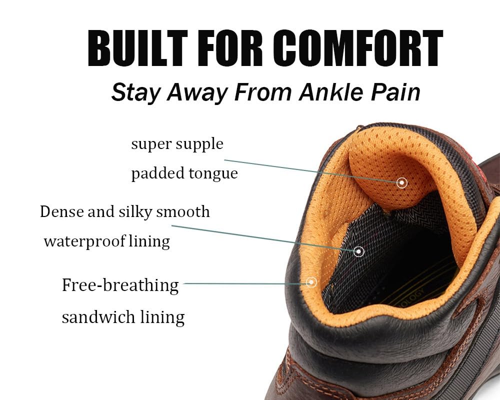 - Waterproof: The advanced waterproof technology combining with water proof full leather ensures that your feet stay dry and protected even in wet and rainy conditions, allowing you to work comfortably in any environment.