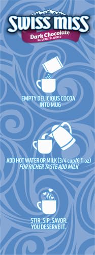 - One 8 count box of Swiss Miss Dark Chocolate Flavored Hot Cocoa Mix